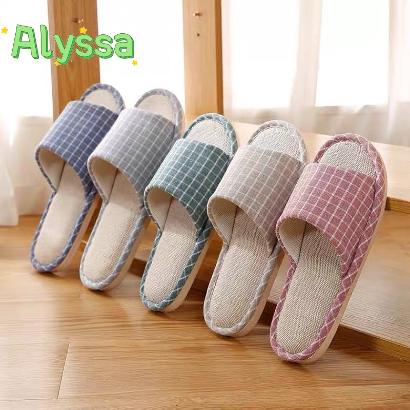 Alyssa Japanese Linen Indoor Slippers Wooden Floor Non Slip Home Slipper For Women And Mens Shopee Philippines